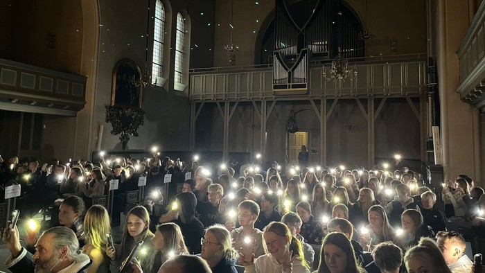 "Det ser fantastisk smukt ud, når lyset i kirken slukkes og erstattes af lyset fra konfirmandernes telefoner samt 200 fyrfadslys fra to lyskors", fortæller Marianne Olsen.